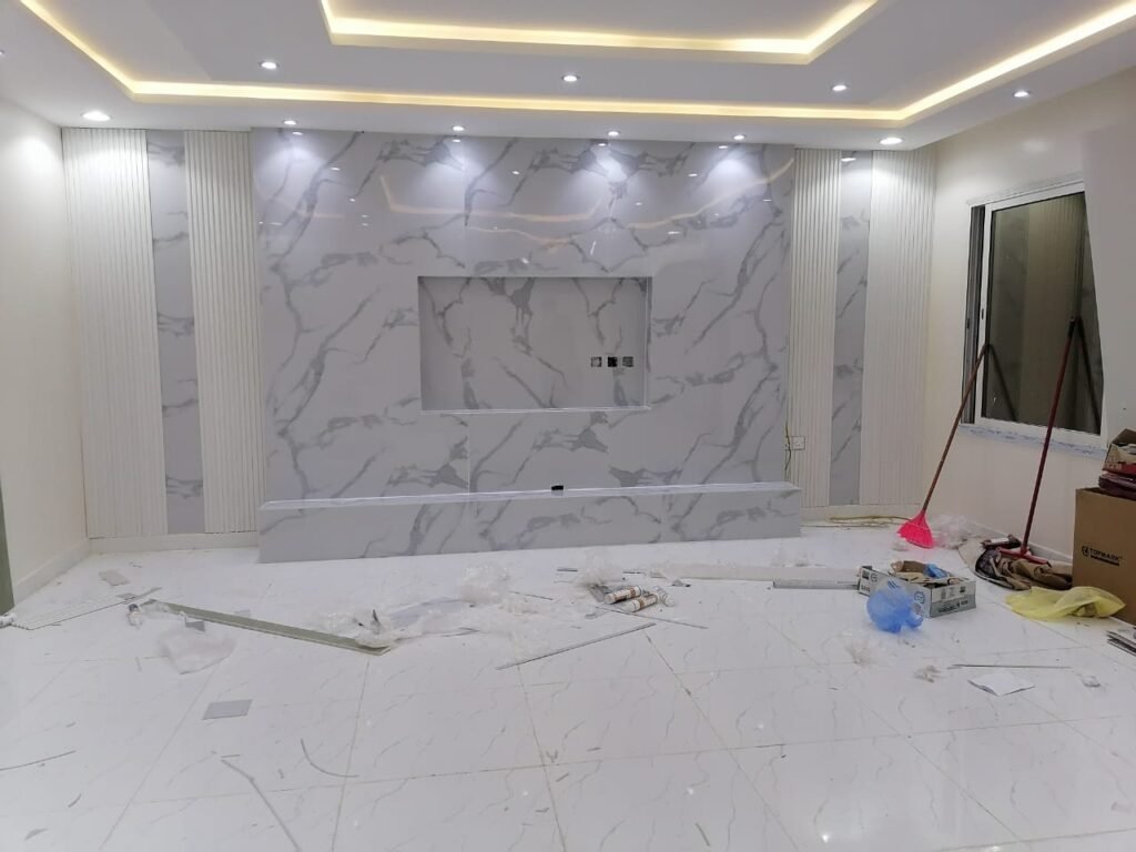 يجب تنظيف الجدران وإزالة الشوائب، مع معالجة الشقوق قبل البدء.